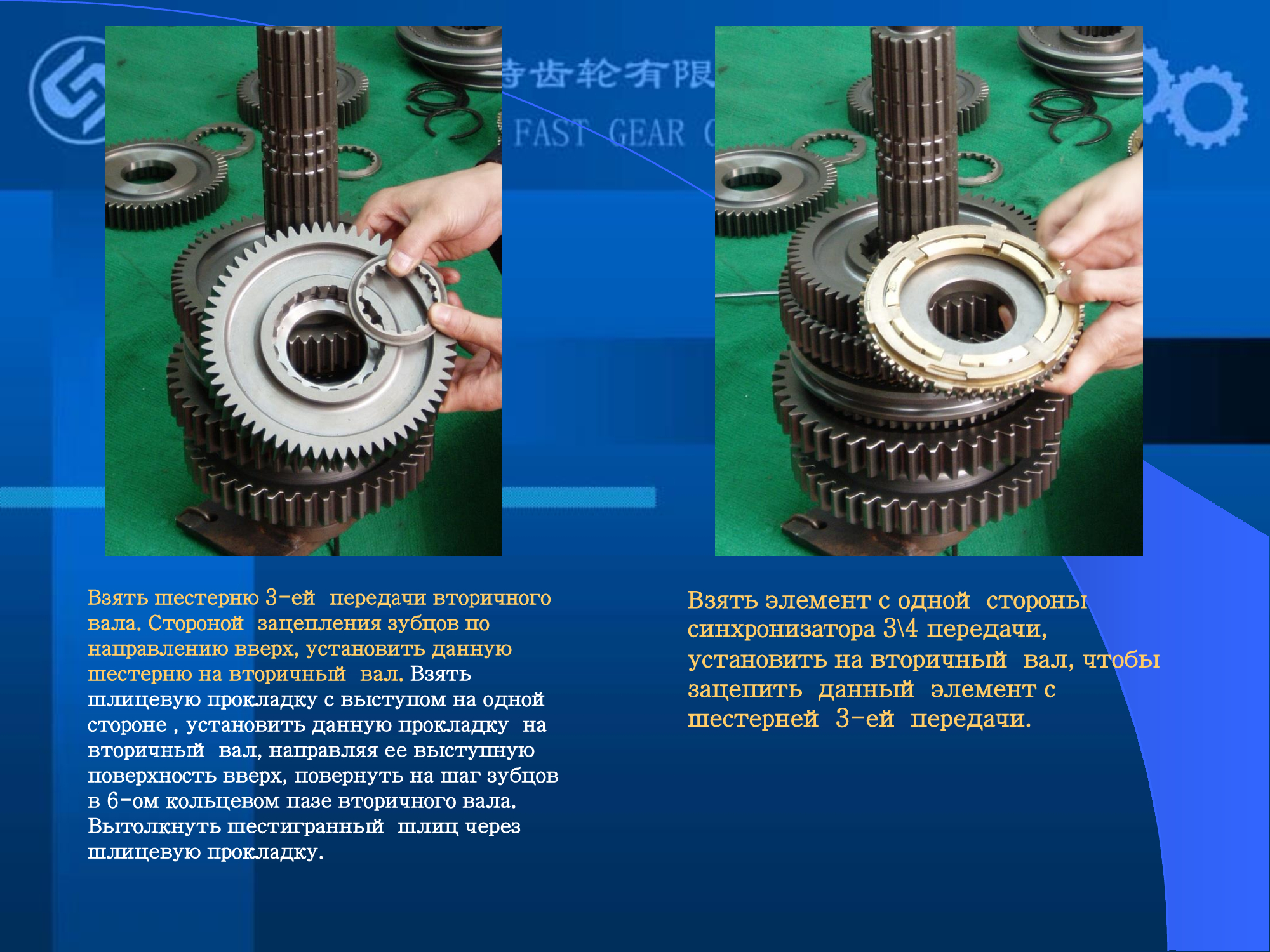 отладки механизма включения передач, сборку узла синхронизаторов и демультипликаторов самой распространенной КПП FAST GEAR,
